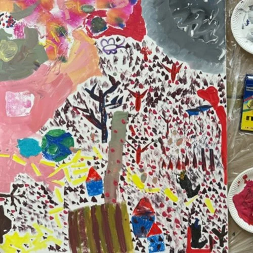 Experimentieren mit Farben, Formen und Komposition unter Anleitung und Inspiration von Anna Dianda.