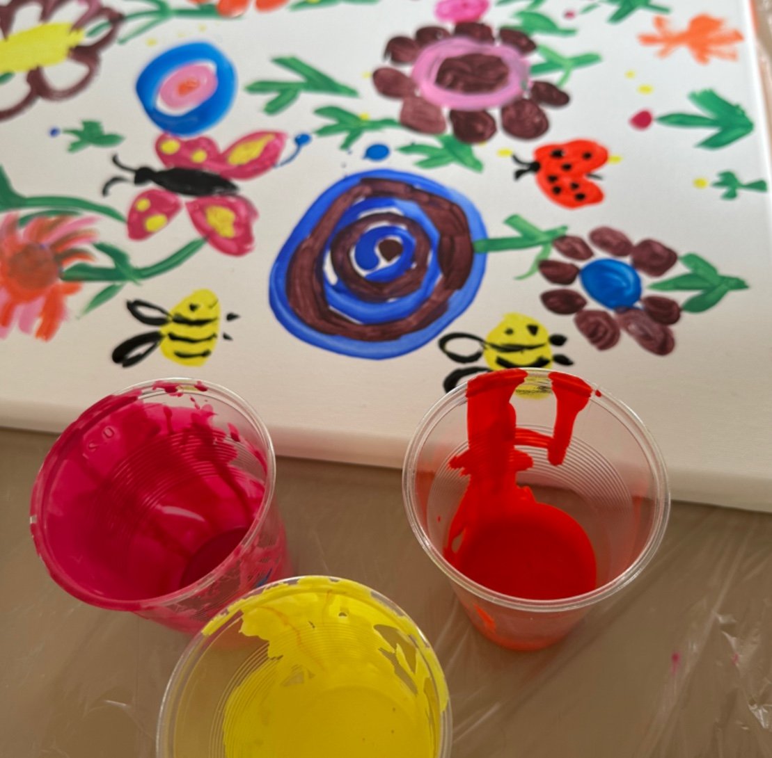 Eine Gruppe aus Mutter-Kind-Teams hat mit mir gemalt und gezeichnet mit Acrylfarben, Markern und Buntstiften. Es gab tatkräftige Unterstützung von Ehrenamtlichen und Frau Hillmer. So haben wir gemeinsam fröhliche und überraschende Stunden erlebt.